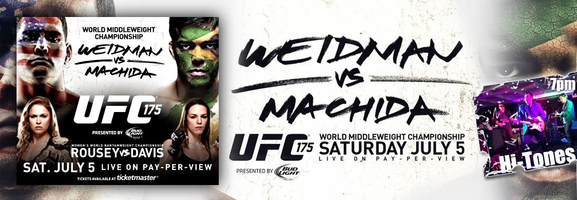 Saturday 7/5 – UFC 175. Weidman vs. Machida. $5 Cover! Action Andy & the Hi-Tones Band starting at 7pm.